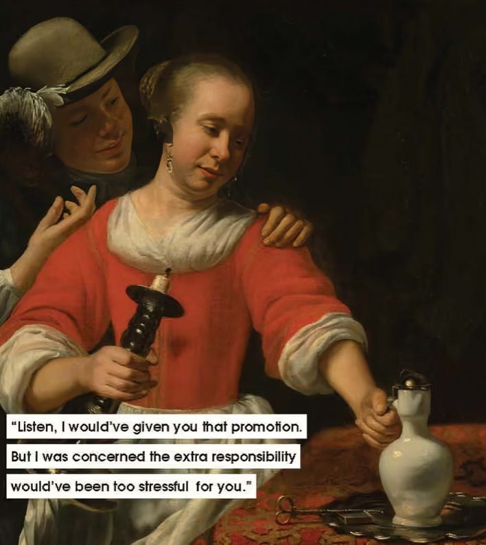 No livro Men to Avoid in Art and Life [Homens para Evitar na Arte e na Vida], Nicole Tersigni sobrepõe frases do quotidiano contemporâneo a várias pinturas clássicas.